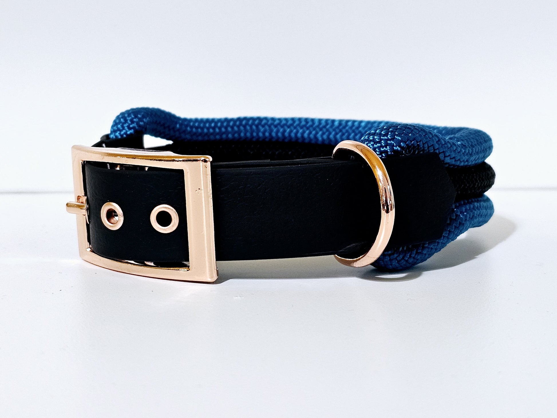 Tau Premium Halsband TRIO - Biothane Verschluss Stück | 10mm / 25 mm | rose gold / blau / schwarz