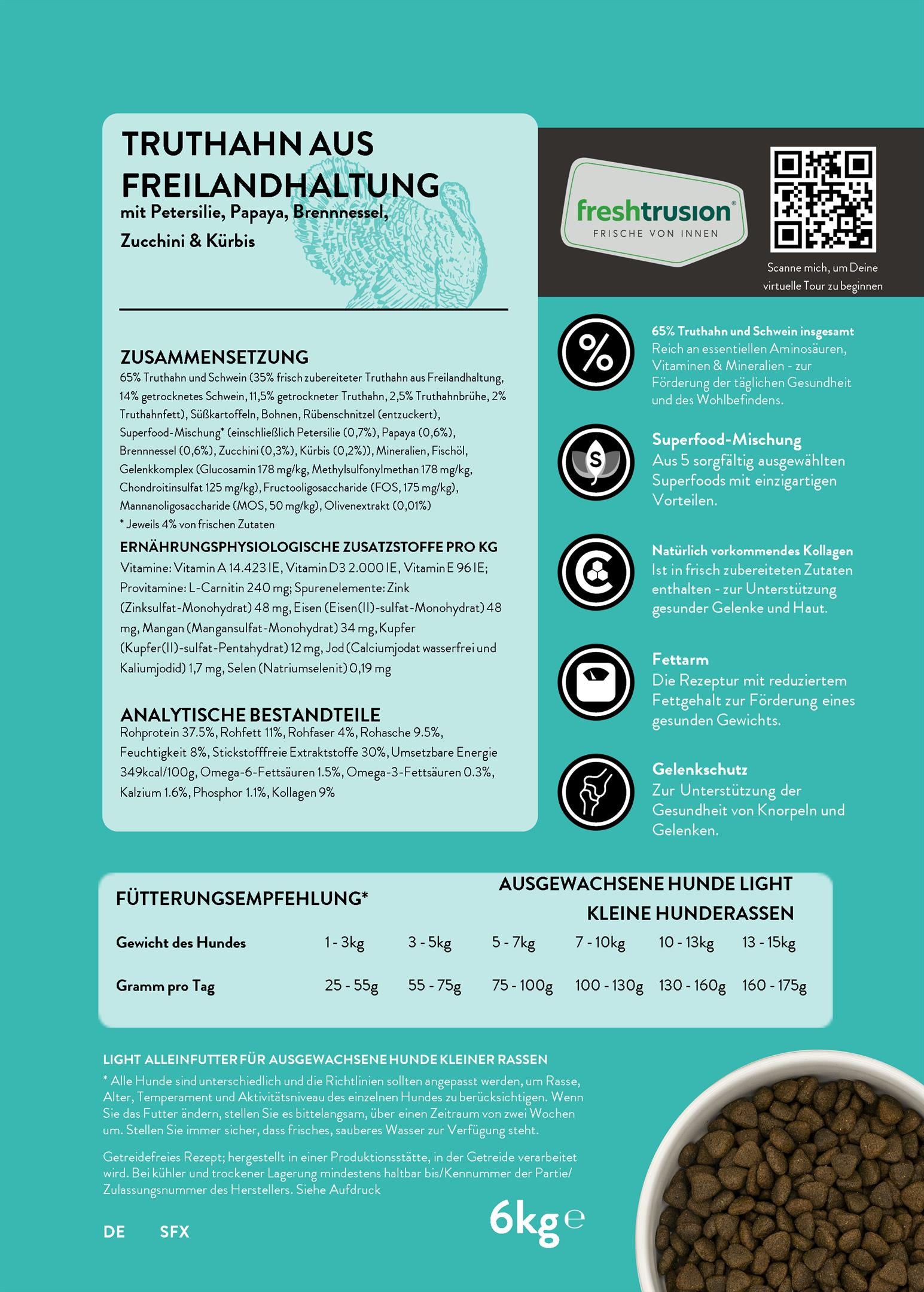 Transparente Inhaltsstoffe: Bei uns wissen Sie genau, was in den Napf kommt. Wir sind stolz darauf, zu 100% transparent über unsere Inhaltsstoffe zu sein. Auf jeder Packung finden Sie einen QR-Code, der Ihnen Einblicke in die Herkunft und Haltung der Tiere gibt, deren Fleisch wir verwenden. Vertrauen Sie auf Qualität – für das Wohl Ihres Hundes!