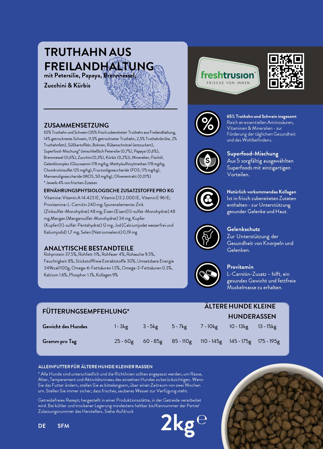 Truthahn aus Freilandhaltung Ältere Hunde Kleine Rassen 2kg